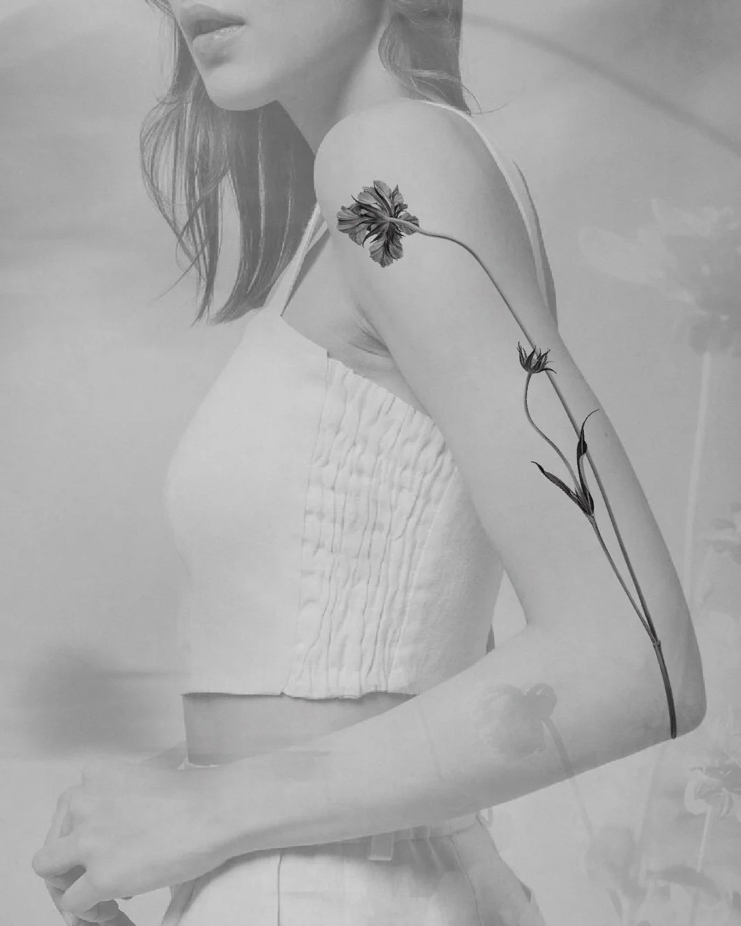 Botanical tattoos, fineline, body landscapes, nature, abstract, textures, collage, black ink.