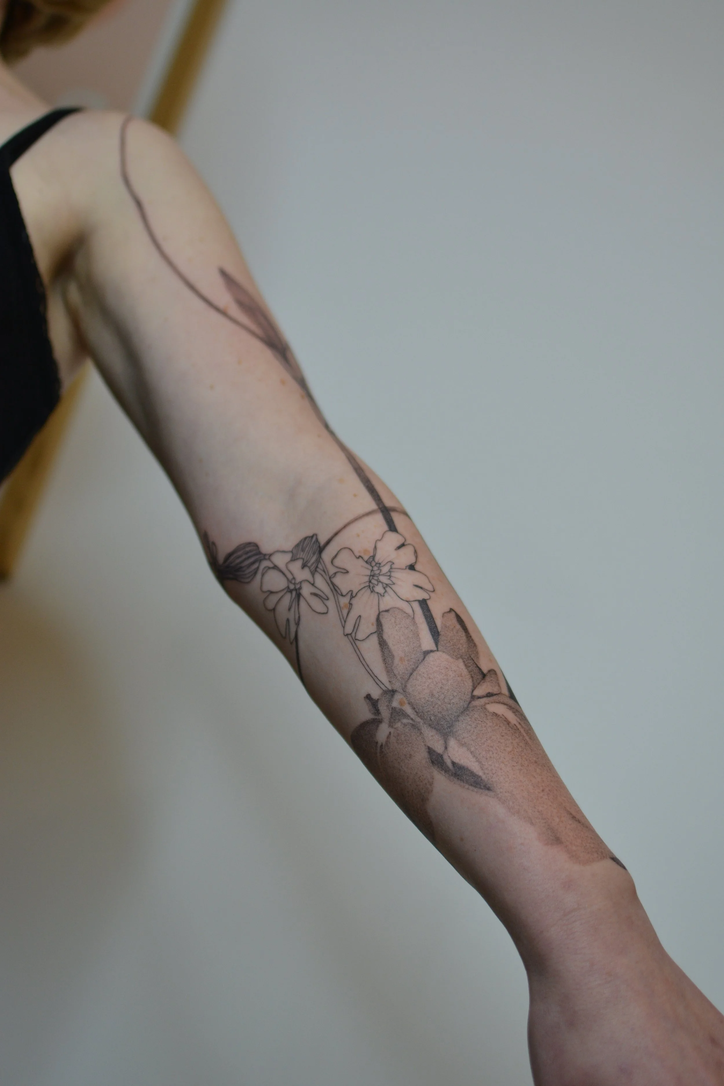 BODY landscapes Large tattoo projects. Minimal. Dots and lines. Where botanical and abstract elements meet to create a landscape on your body.